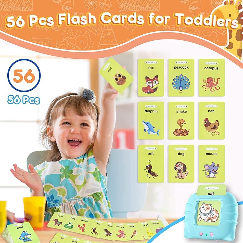 This interactive flashcard reader teaches 224 essential words with realistic sound effects and clear pronunciation, helping kids develop early language skills while reducing screen time.